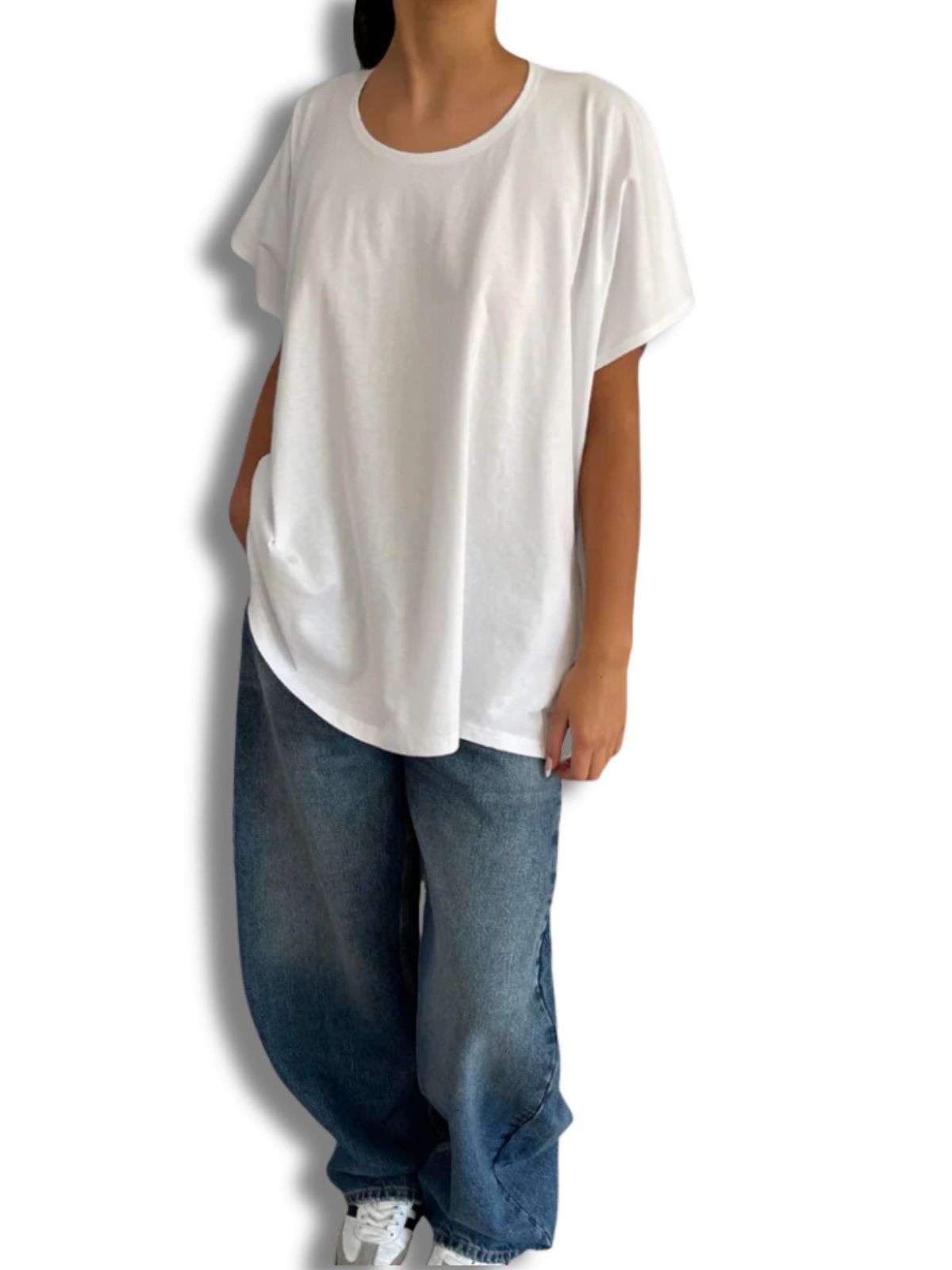 The TWO DAUGHTERS High Low Tee is the kind of piece you’ll reach for on repeat soft, oversized, and effortlessly flattering with its high low hem and folded details.
